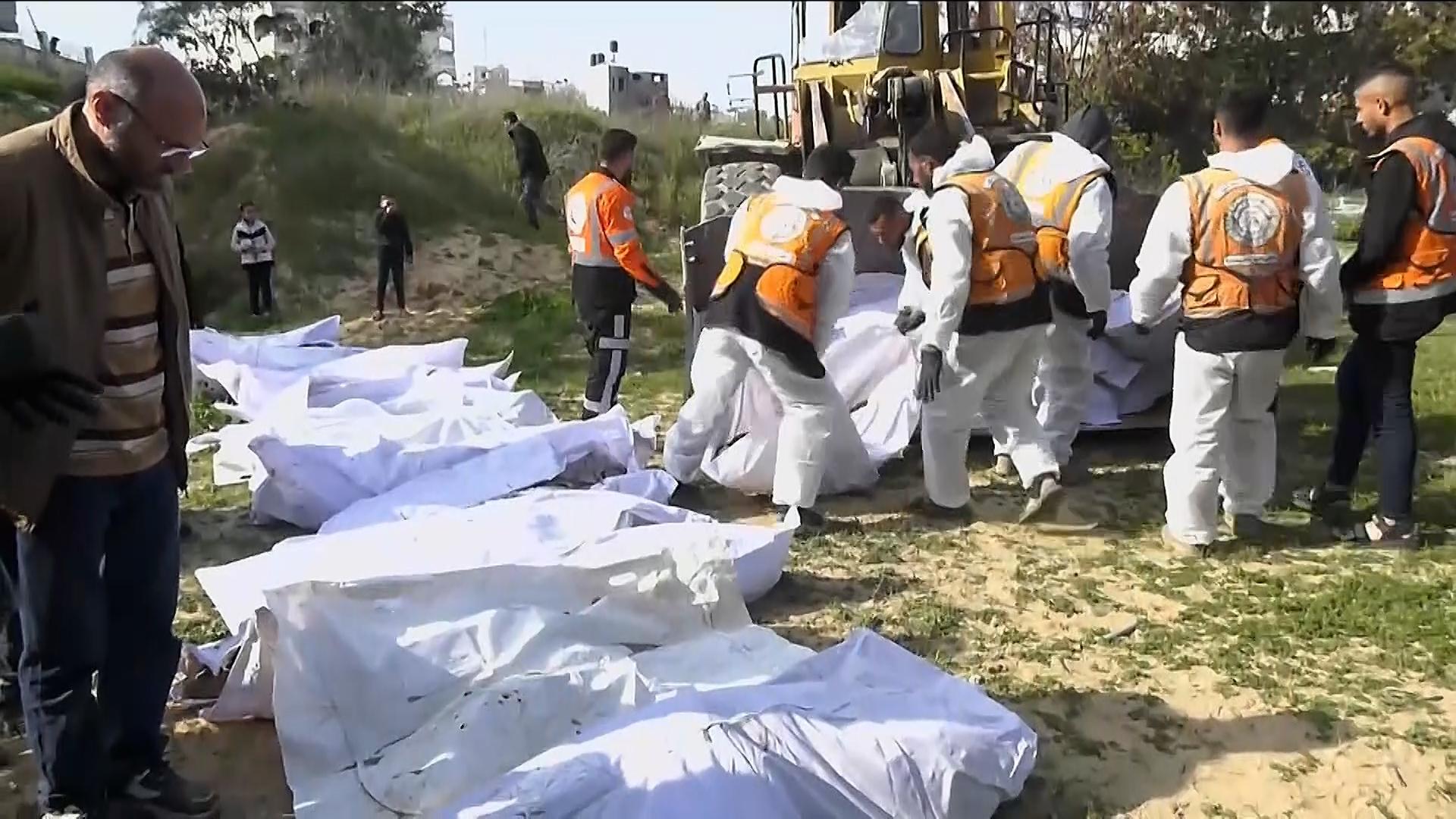 بدأت فرق الدفاع المدني في شمالي قطاع غزة انتشال جثامين عشرات الشهداء، كان الأهالي قد دفنوها في مقابر جماعية بشكل عشوائي بسبب ظروف الحرب والقصف المستمر من قوات الاحتلال.