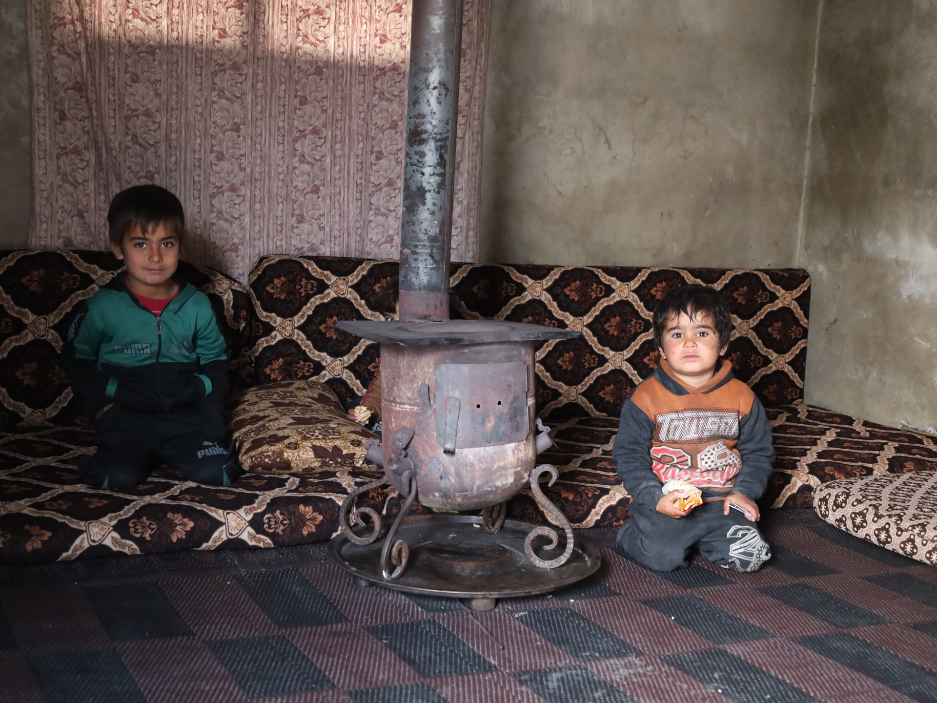 يقول حسين القدور (55 عاما) أحد سكان المخيم، إنه وأفراد أسرته يخرجون في ساعات النهار بحثا عن أكياس النايلون وبقايا الأغصان اليابسة من أجل إشعالها داخل المدفأة البدائية التي يلقون فيها أي شي قابل للحرق، رغم مخاطر الدخان المنبعث منها.